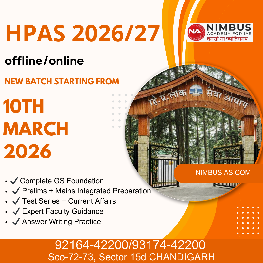Himachal Pradesh Administrative Services HPAS/HAS Exam is conduducted by Himachal Pradesh Public Service Commission (HPPSC). All the top rank posts like SDM, HPS, Tehsildar, BDO, Treasury Officer, Assistant Registrar Co-operative Societies etc. are filled through this exam. The process of recuritment includes Preliminary exam, Mains exam and Personal Interview. Every year, thousands of aspirants appear in this exam to get their dream job. Nimbus Academy provides the best HPAS Coaching in Chandigarh with expert faculty.